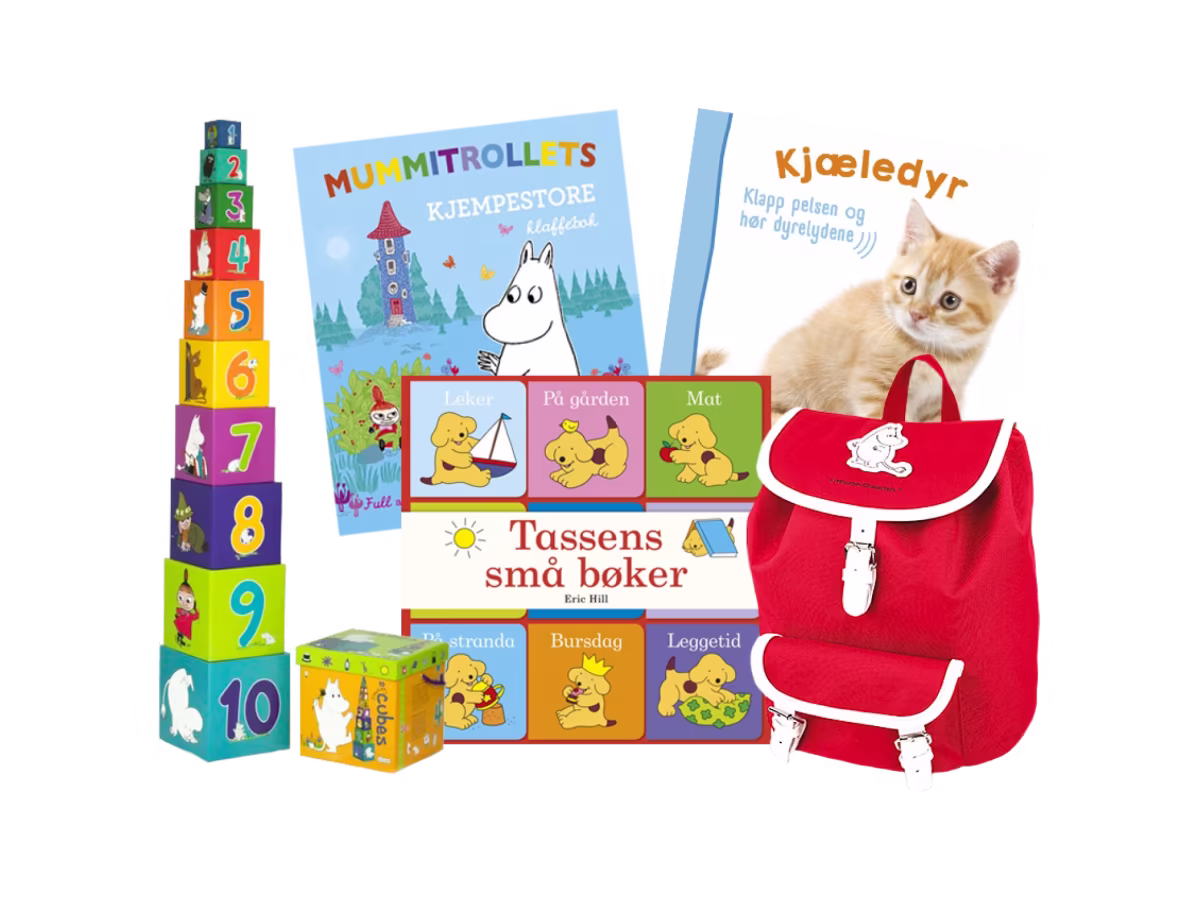 Få en Mummisekk, Mummitrollet stableklosser og søte babybøker i velkomstpakke fra Barnas Egen Bokverden - Baby.
