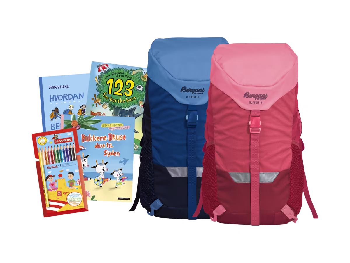 Bli medlem av Barnas Egen Bokverden og få 3 valgfrie barnebøker, Stabilo fargeblyanter og Bergans Ruffen 18LL barnesekk i valgfri farge i velkomstgave.